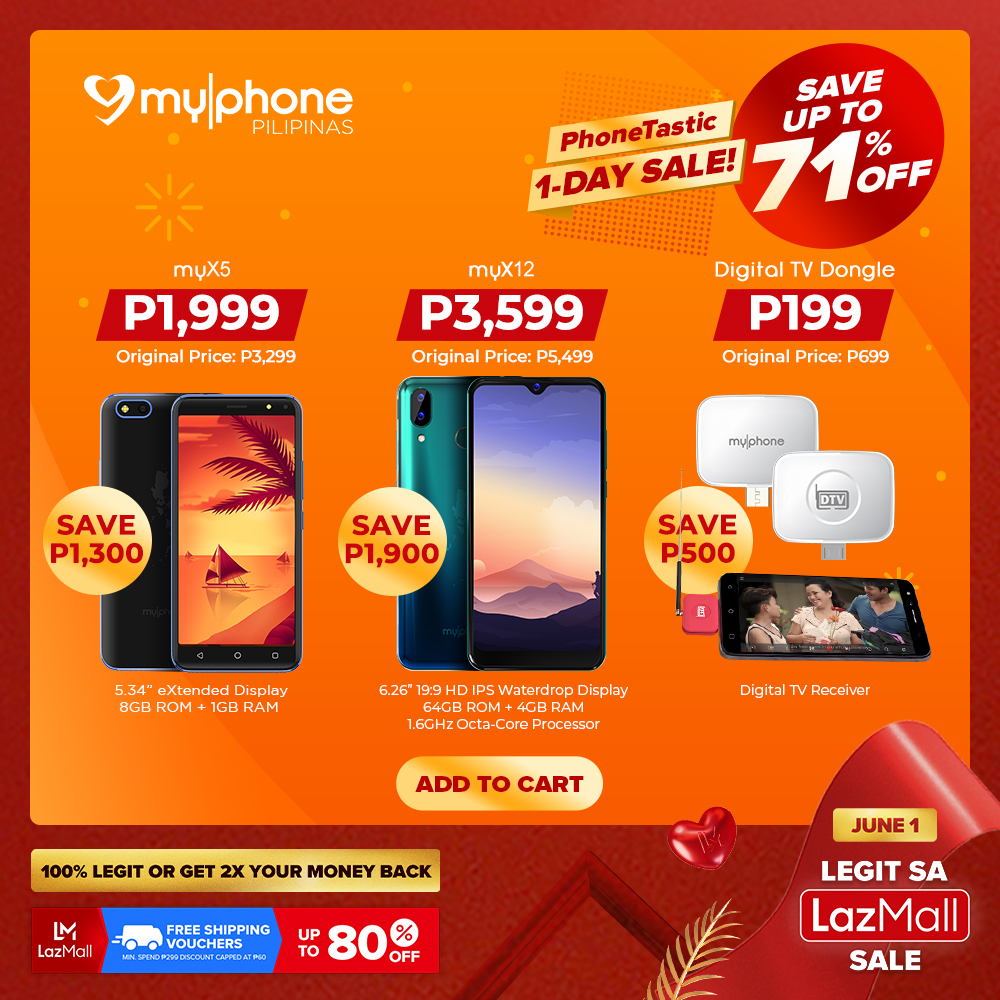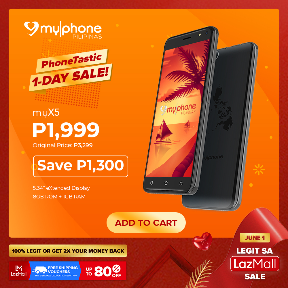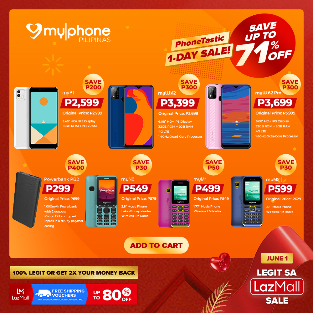 MyPhone’s Phonetastic 1-day Sale on Legit Sa LazMall Sale will be happening on June 1 only.